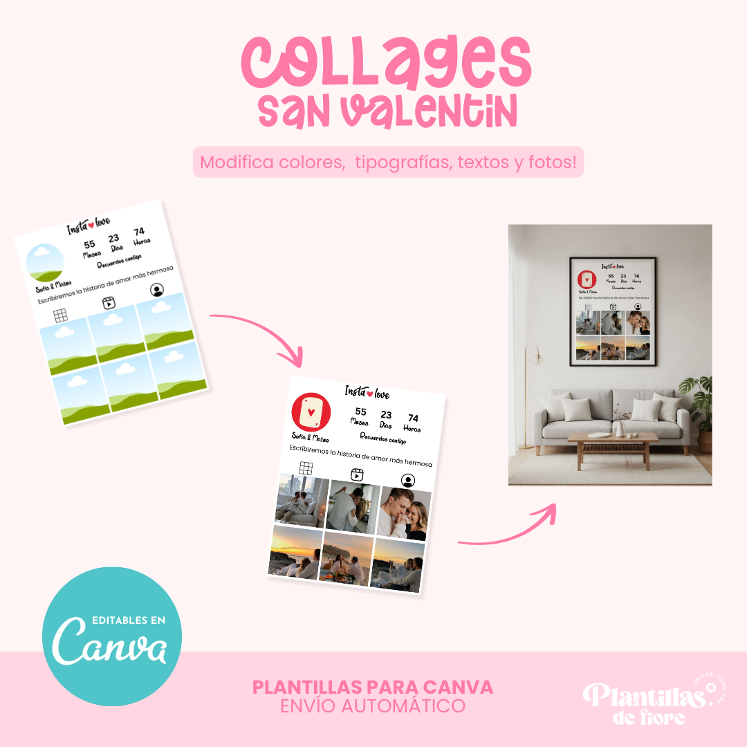 Pack de cuadritos 100% editables en Canva (¡gratis!) para que agregues tus fotos, colores y textos como más te guste 🎨🖼️