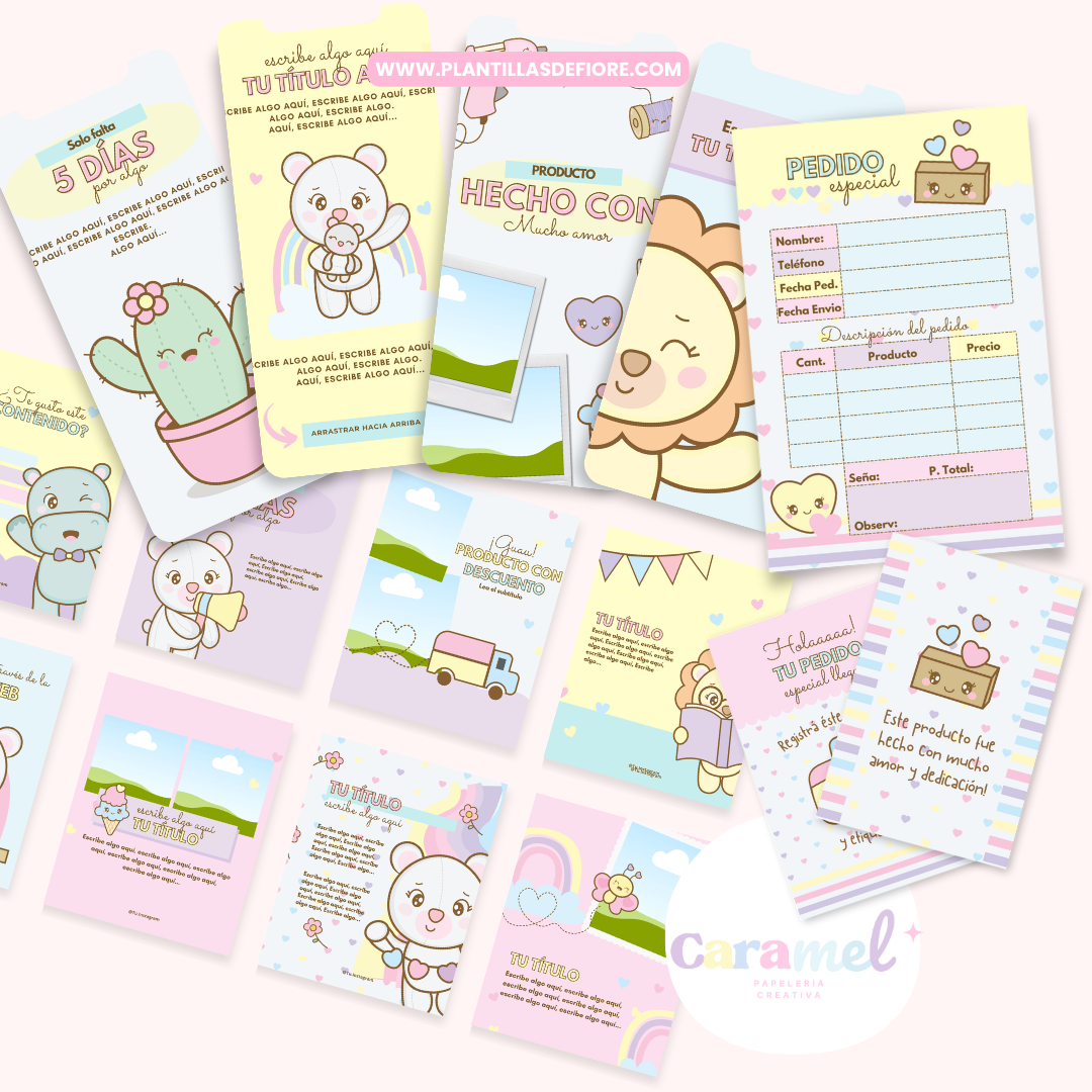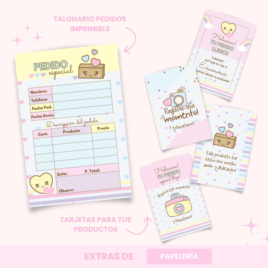 - Extras de papeleria: Talonario de pedidos + 4 tarjetas para editar e imprimir y entregar con tus pedidos