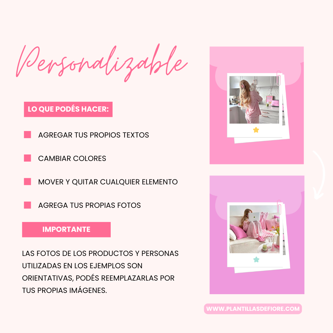 Todas las plantillas son editables, se pueden modificar textos, colores y fotos.