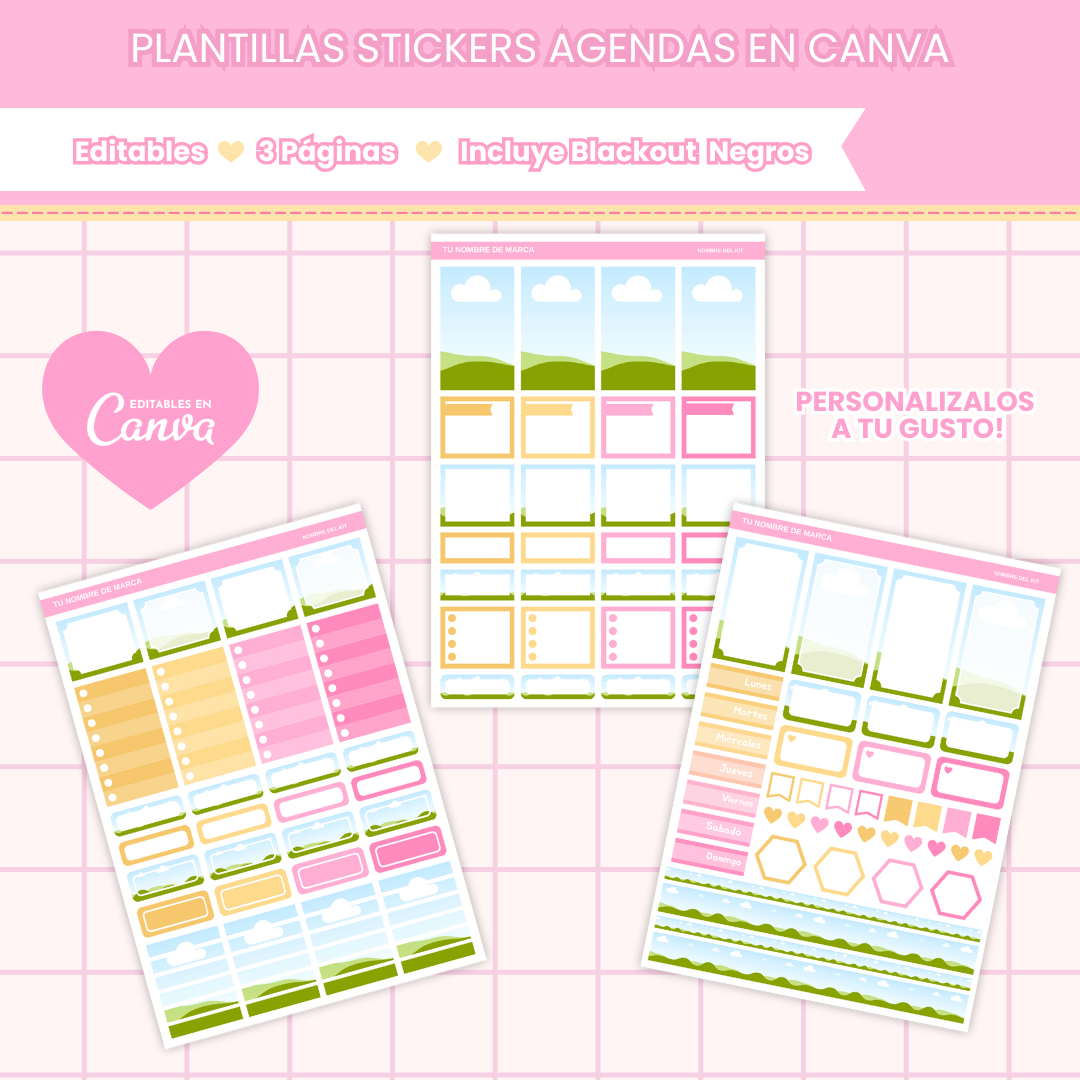 Estas plantillas se crearon en Canva y cada página es editable (cambia colores, texto, añade imágenes, fondos, texturas o lo que quieras).