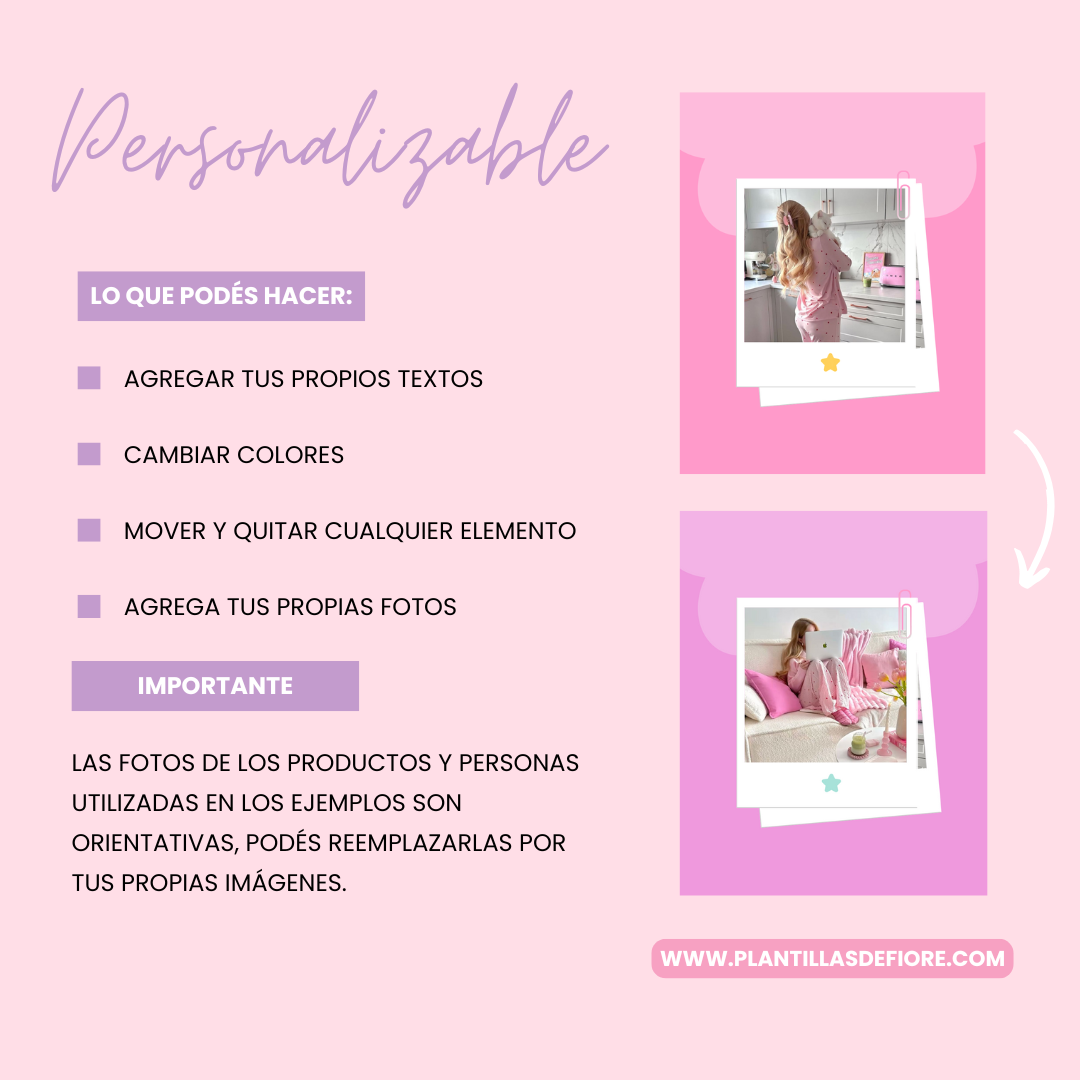Todas las plantillas son editables, se pueden modificar textos, colores y fotos.