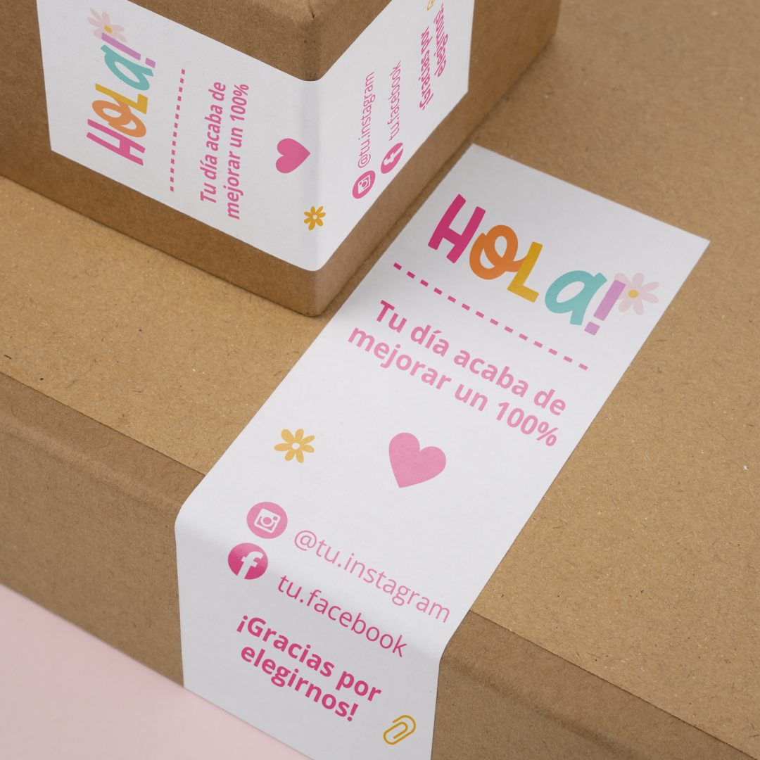 Etiqueta para Bolsas o caja “Hola llegué” (Editable)